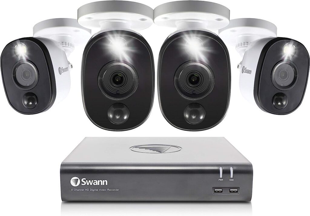 Swann Home DVR Security Camera System with 1TB HDD, 8 Channel 4 Camera, 1080p Full HD Video, Indoor or Outdoor Wired Surveillance CCTV, Color Night Vision, Heat Motion Detection, LED Lights