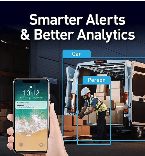 Swann Home Security Camera System with 2TB HDD, 8 Channel 8 Cam, POE Cat5e NVR 4K HD Video, Indoor or Outdoor Wired Surveillance CCTV, Color Night Vision, Heat Motion Detection, LED Light