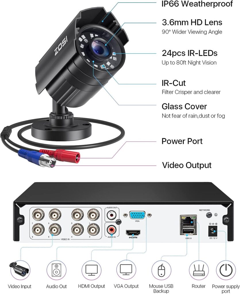 ZOSI 3K Lite 8CH Security Camera System Outdoor with 1TB Hard Drive, AI Human/Vehicle Detection, Night Vision,H.265+ 8 Channel 5MP Lite Video DVR Recorder,8X 1080P HD 1920TVL Weatherproof CCTV Cameras