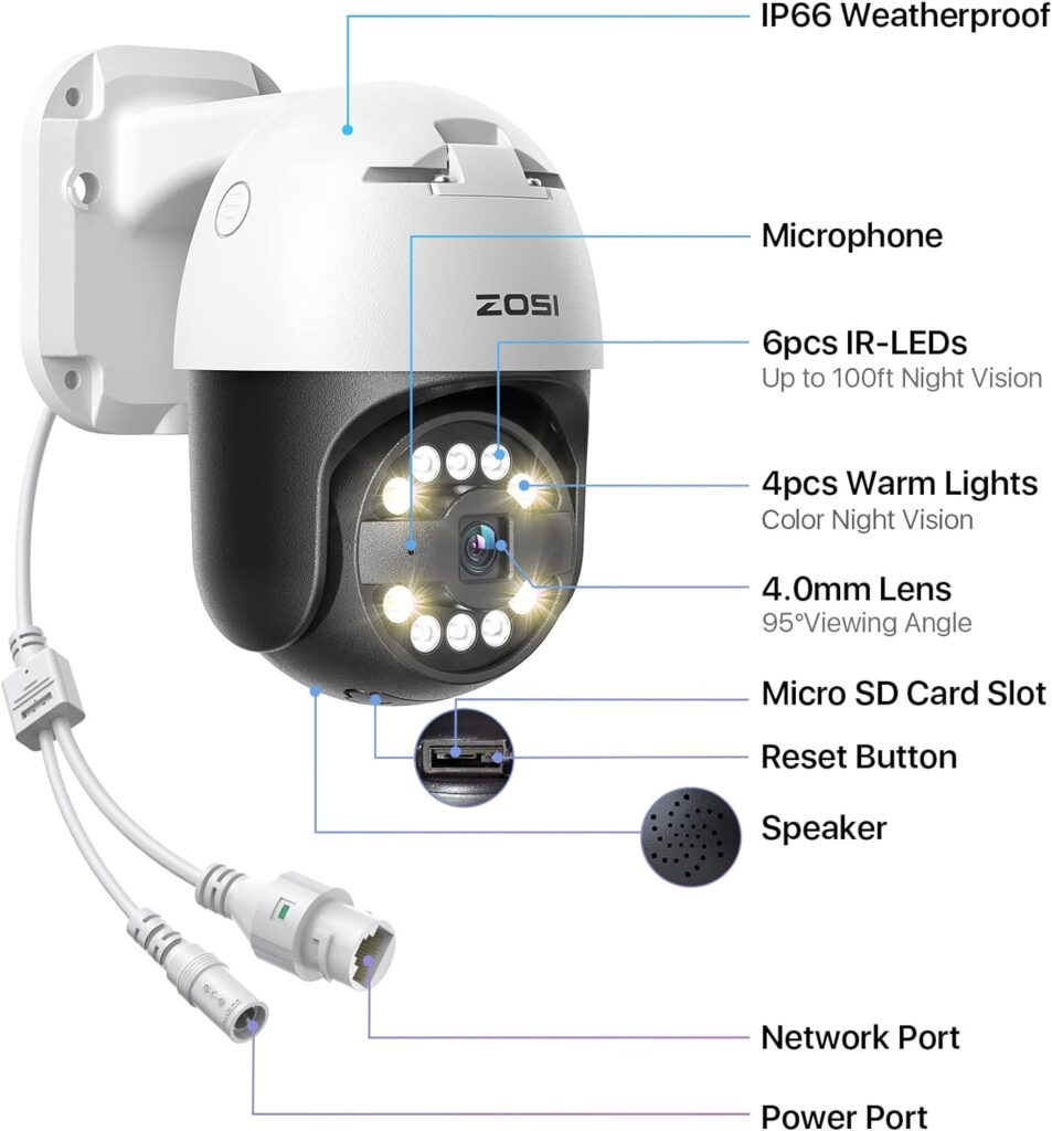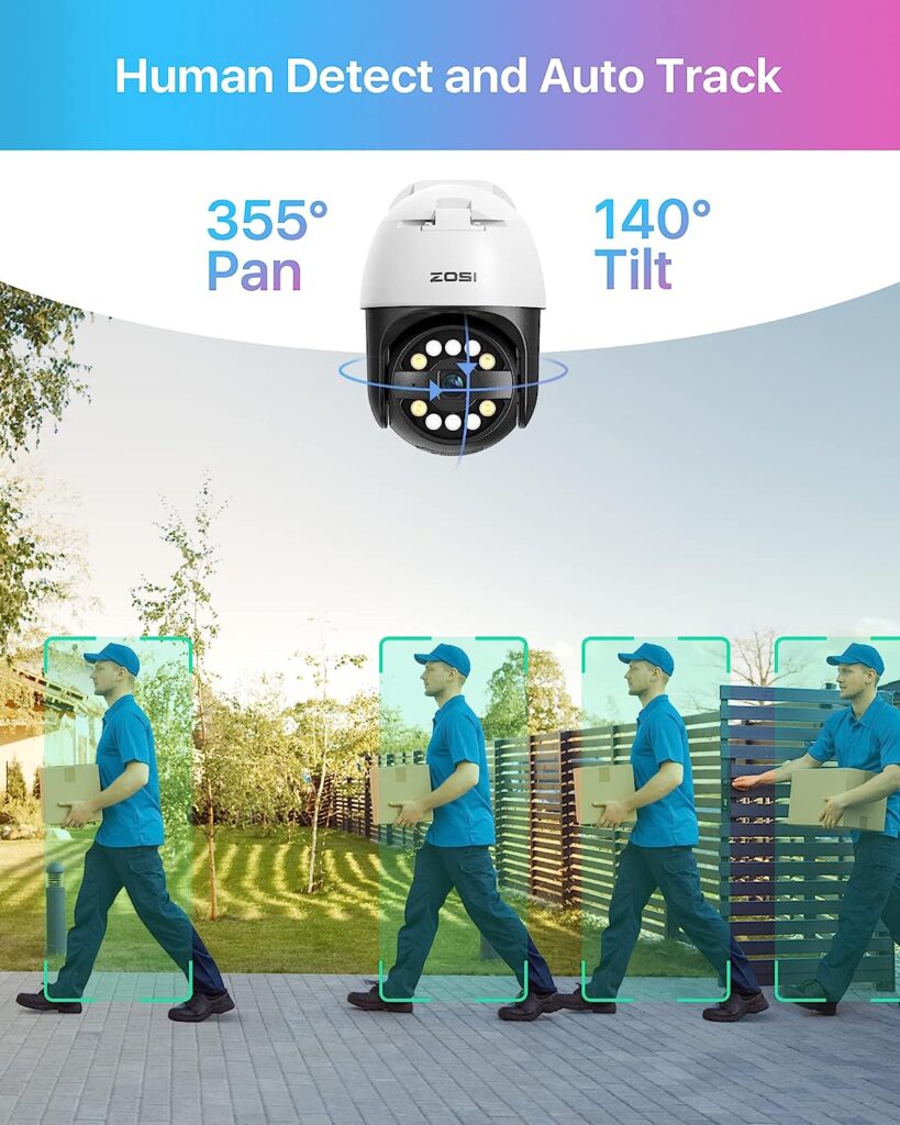 ZOSI 5MP 3K PoE PTZ Camera Outdoor with AI Face Human Vehicle Detection & Siren Alarm, Starlight Night Vision, Auto Tracking, Floodlights, 2-Way Audio, Pan/Tilt, 5X Digital Zoom, SD Card Storage